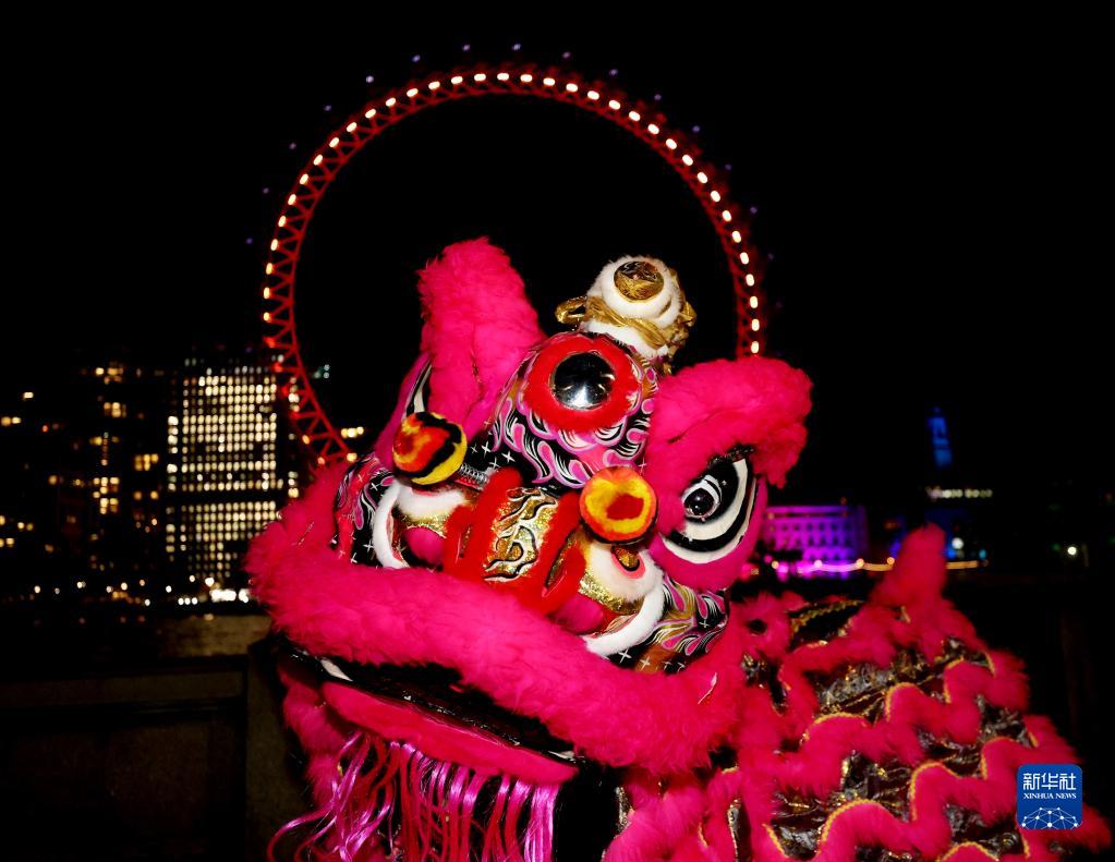 當晚,英國倫敦地標建筑、巨型摩天輪“倫敦眼”亮起紅色燈光,迎接中國農歷新年的到來(lái)。