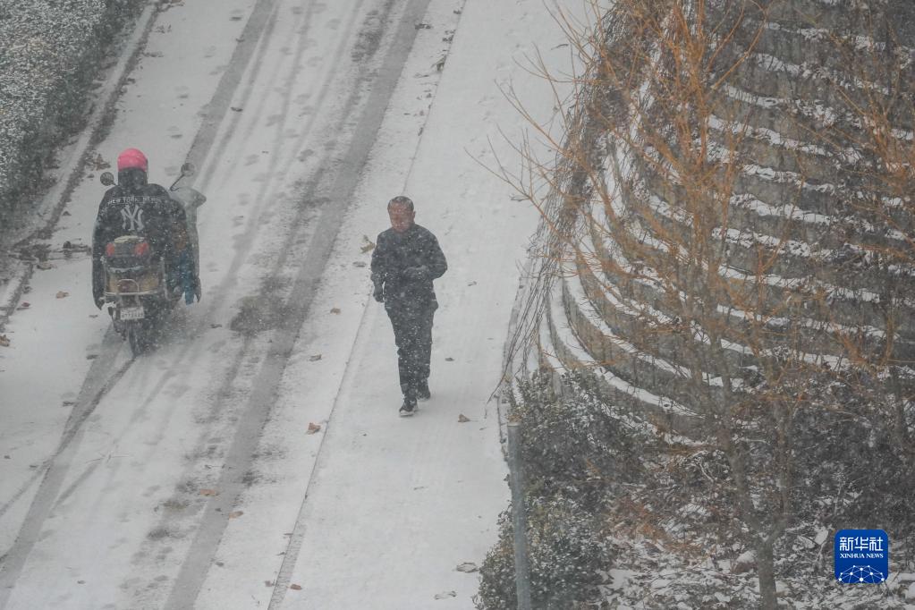 當日,受冷空氣影響,山東省濟南市迎來(lái)降雪天氣。
