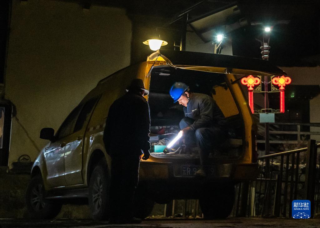 1月8日,旺登在幫助雨崩村村民檢修電路前整理材料。