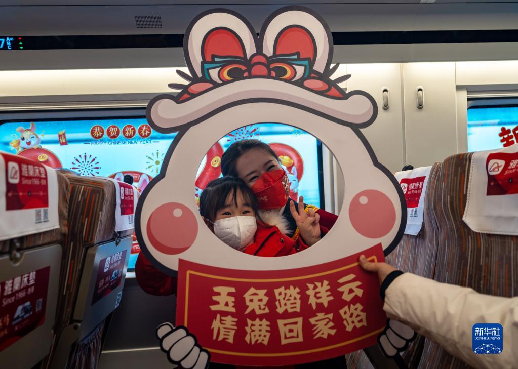 1月13日,在丹東開(kāi)往上海虹橋的G1230次列車(chē)上,列車(chē)乘務(wù)人員為旅客準備了一場(chǎng)熱鬧的高鐵聯(lián)歡會(huì ),在歡歌笑語(yǔ)中迎接農歷小年。
