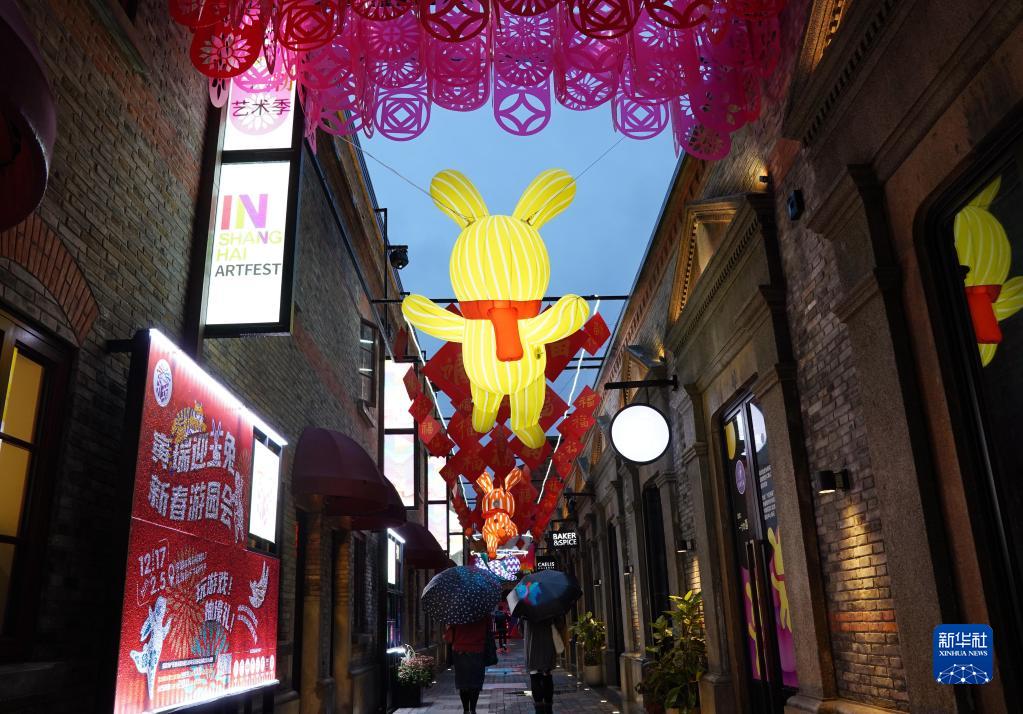 上海:“潮兔”彩燈點(diǎn)亮弄堂