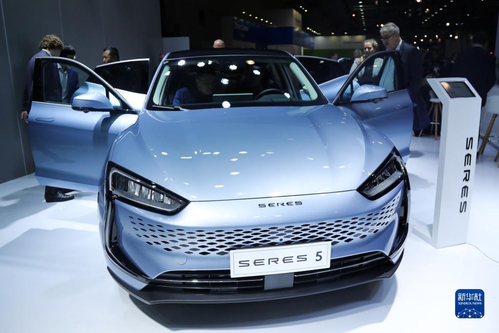 1月13日,人們在比利時(shí)布魯塞爾車(chē)展媒體開(kāi)放日上參觀(guān)賽力斯5電動(dòng)汽車(chē)。