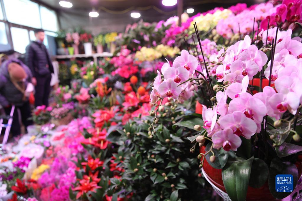 1月14日,市民在河北省承德市雙橋區年貨市場(chǎng)上選購鮮花。