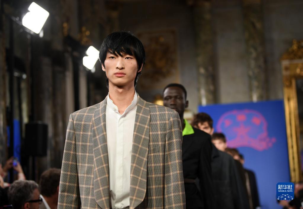 1月14日,模特在意大利米蘭男裝周上展示上海灘品牌時(shí)裝。