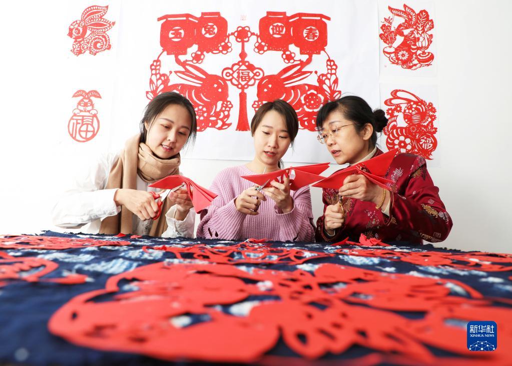 1月15日,在河北省唐山市豐潤區,人們在“剪紙迎新春”主題活動(dòng)上體驗剪紙技藝。