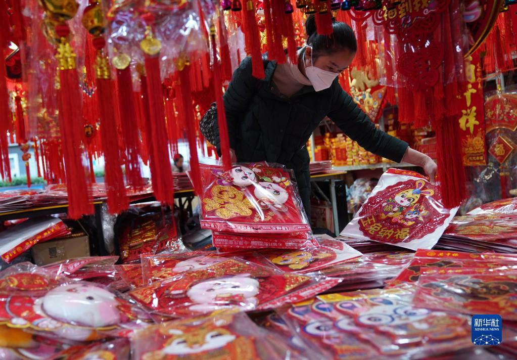 1月14日,在云南省昆明市,人們選購春節飾品。
