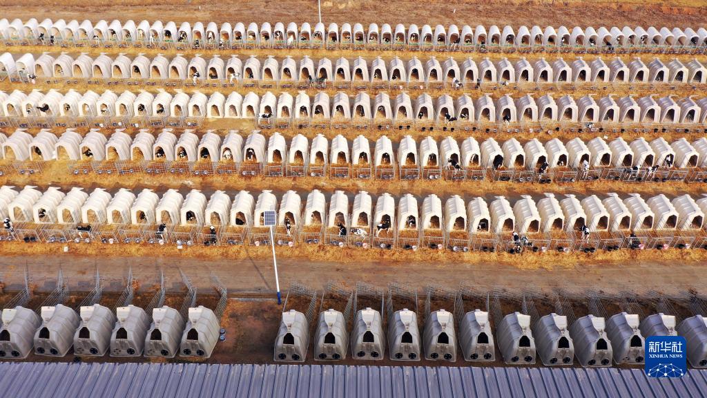 1月15日,在衛崗乳業(yè)日照鮮純生態(tài)牧業(yè)有限公司拍攝的犢牛島(無(wú)人機照片)。