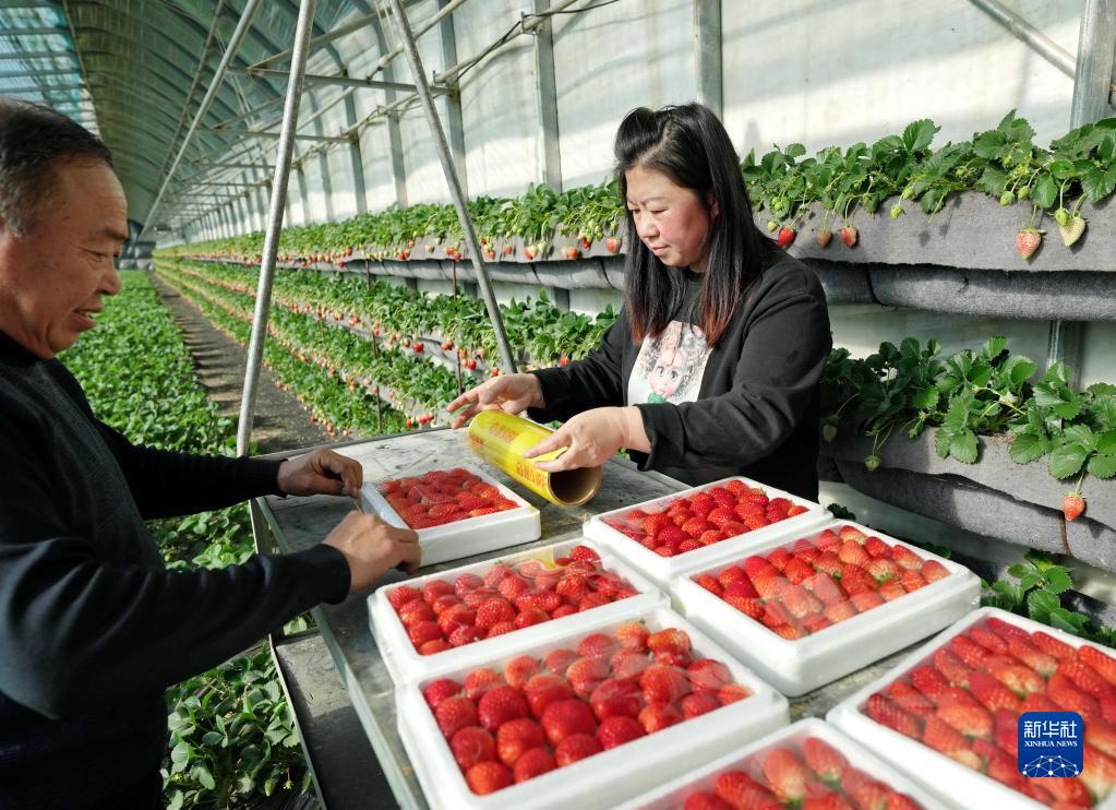 春節臨近,河北省昌黎縣種植的1萬(wàn)多畝大棚草莓陸續進(jìn)入采摘期,果農加緊采摘,供應市場(chǎng)。