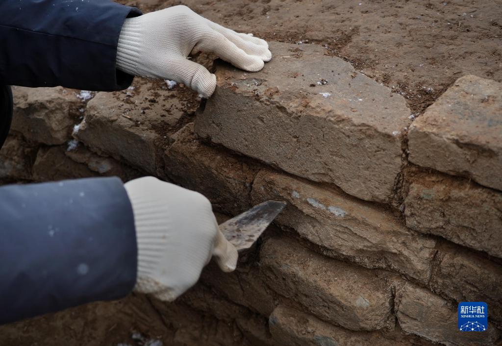 1月14日,考古工作人員在清理河南漢魏洛陽(yáng)城宮城遺址內的倉窖區磚砌水道。