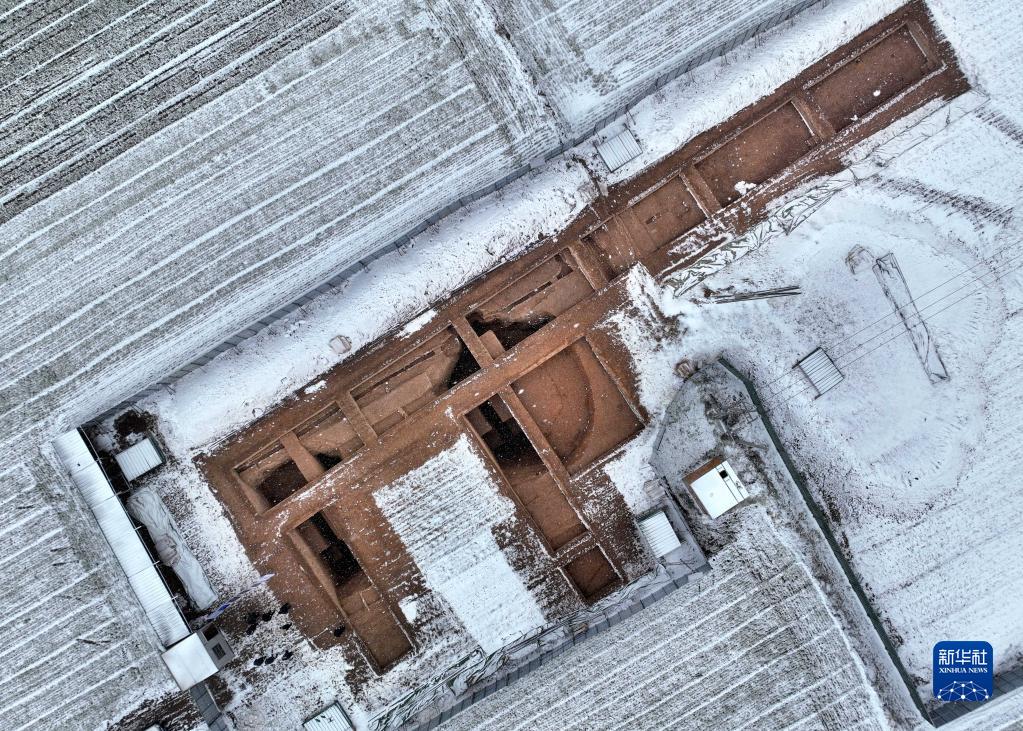 這是河南漢魏洛陽(yáng)城宮城遺址的宮城東墻發(fā)掘區全景(1月14日攝,無(wú)人機照片)。
