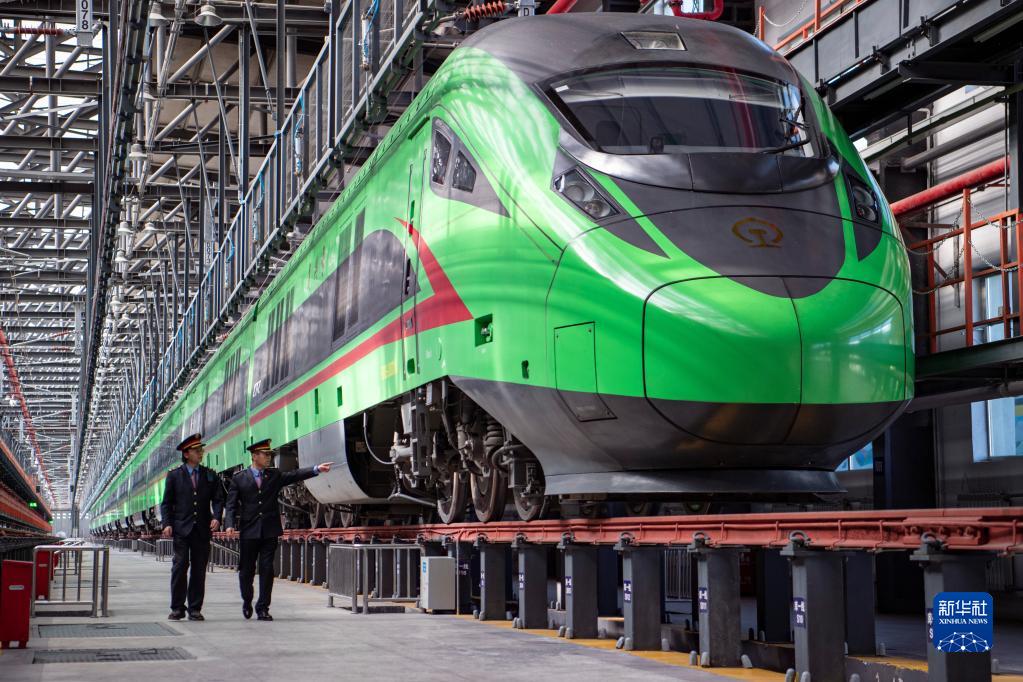在拉薩機輛整備中心,黃起崗(右)和同事交流動(dòng)車(chē)組駕駛經(jīng)驗和業(yè)務(wù)知識(1月11日攝)。