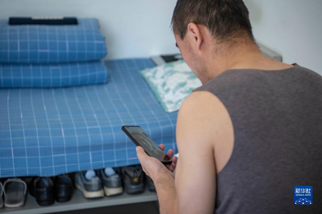 在拉薩機輛整備中心的宿舍里,黃起崗和女兒視頻通話(huà)(1月11日攝)。