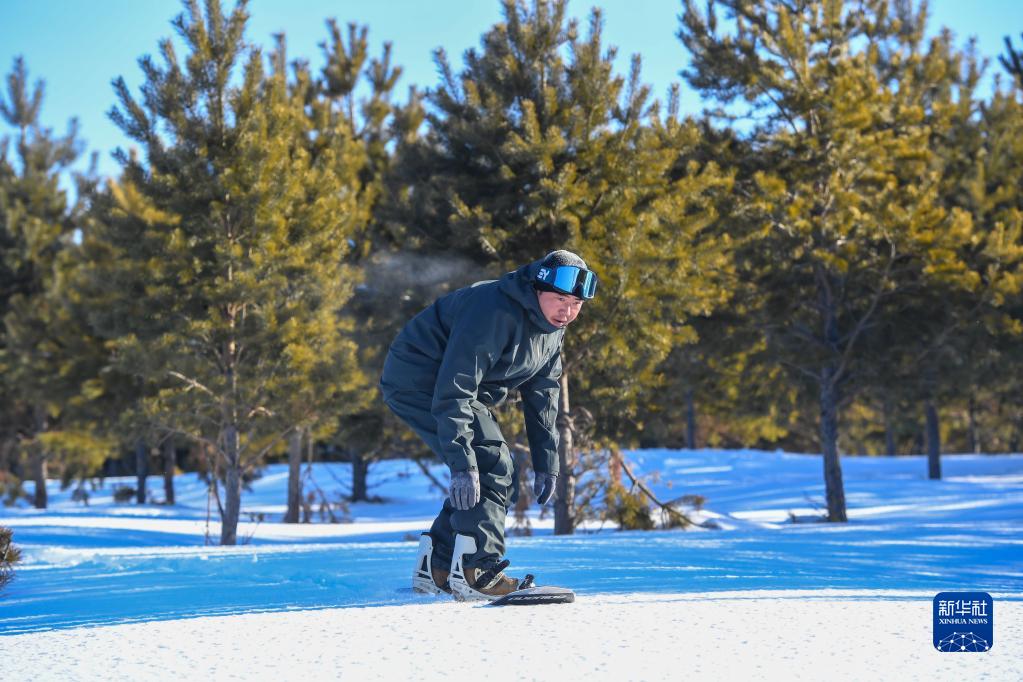 1月15日,布赫·巴雅爾在天然雪場(chǎng)里滑行。