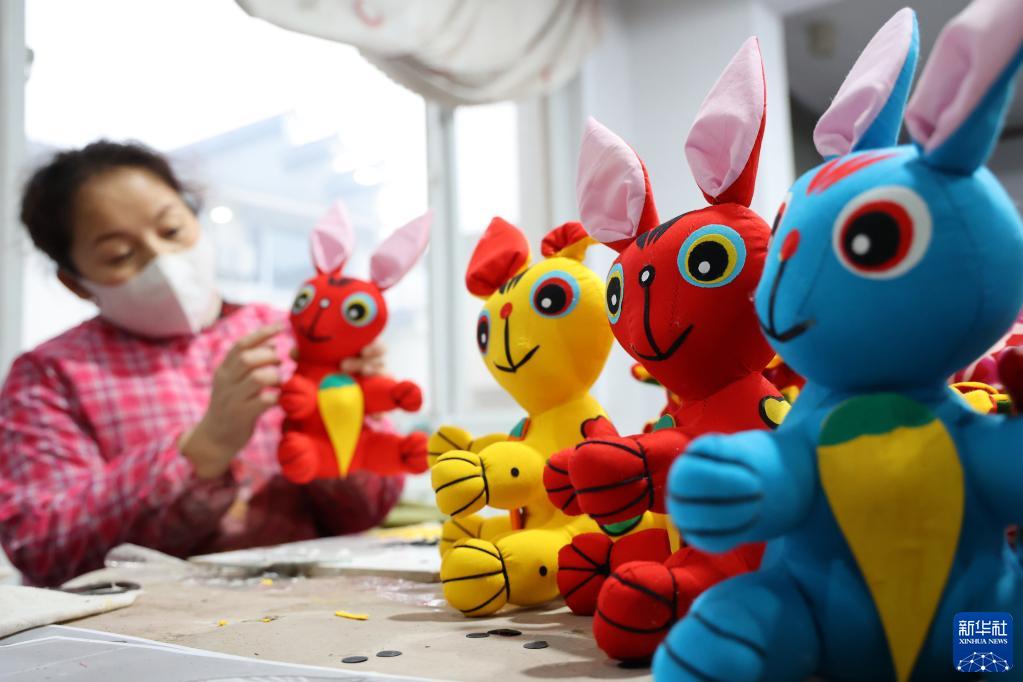 農歷兔年春節將至,以生肖兔為主題的手工藝品訂單增多,需求旺盛。