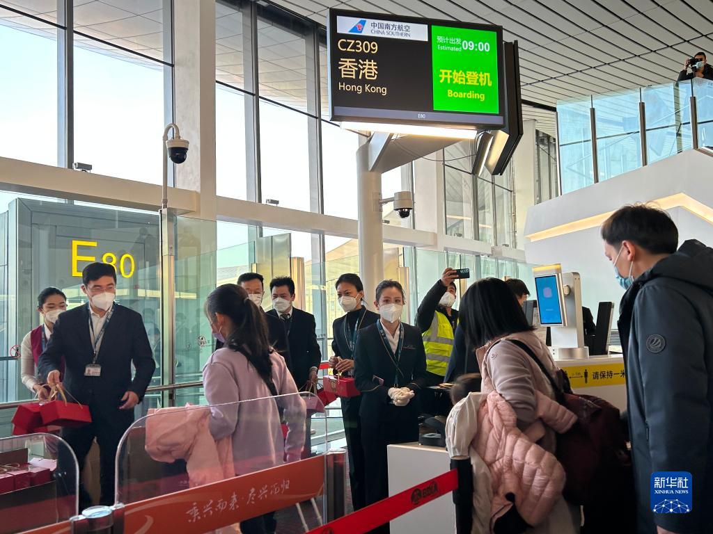 1月17日上午9時(shí)許,前往香港的CZ309航班搭乘100多名乘客騰空而起,中國“新國門(mén)”北京大興國際機場(chǎng)“暫?!苯甑膰H及地區客運航班“重啟”,國際及港澳臺地區客運航線(xiàn)正式恢復。