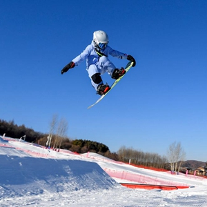 呲桿、飛包、空翻、轉體……10歲的單板滑雪少年都軒銘在雪道上“呲”出一片雪霧,結束了一連串令人眼花繚亂的滑雪動(dòng)作。他的父親都宇腳踩雪板、手持運動(dòng)相機緊隨其后,跟拍記錄兒子在雪上的精彩瞬間。