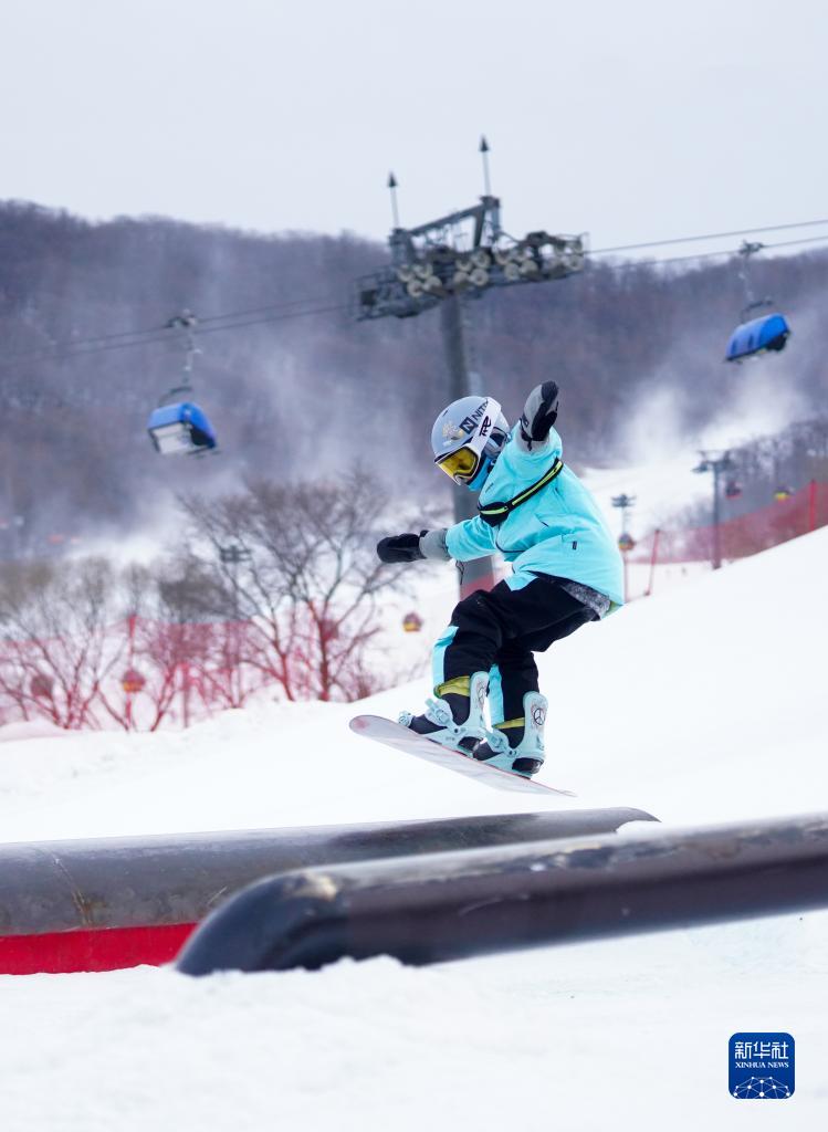 都軒銘在吉林省吉林市萬(wàn)科松花湖度假區V-PARK地形公園挑戰場(chǎng)地道具(2023年1月14日攝)。