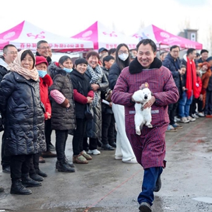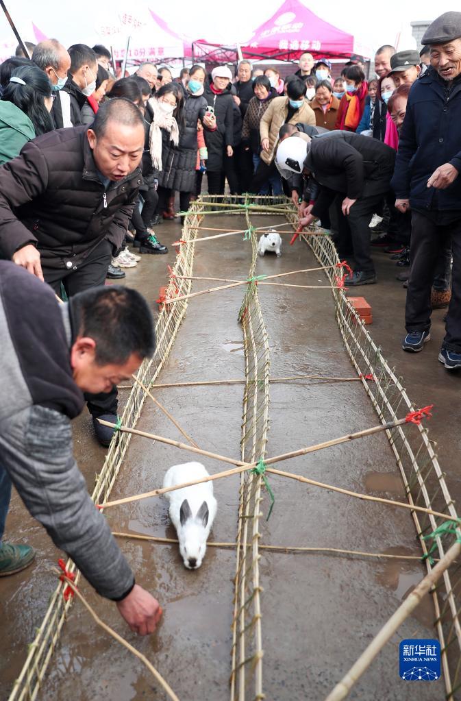 當日,四川省華鎣市永興鎮在馬架坪村產(chǎn)業(yè)基地“玉兔園”組織開(kāi)展“玉兔賽跑”趣味活動(dòng),人們在歡快祥和的氛圍中迎接兔年的到來(lái)。