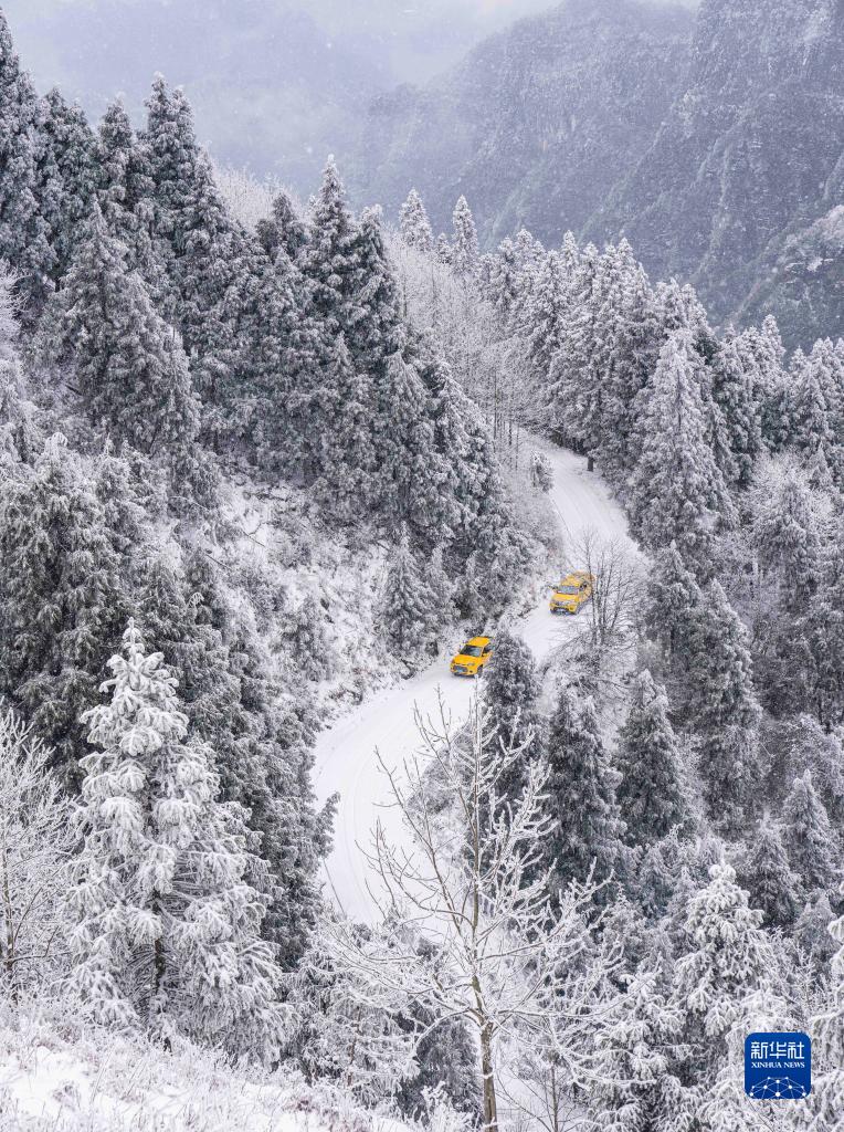 1月17日,在湖北省鶴峰縣,應急搶險人員駕車(chē)穿行在林區小路上。