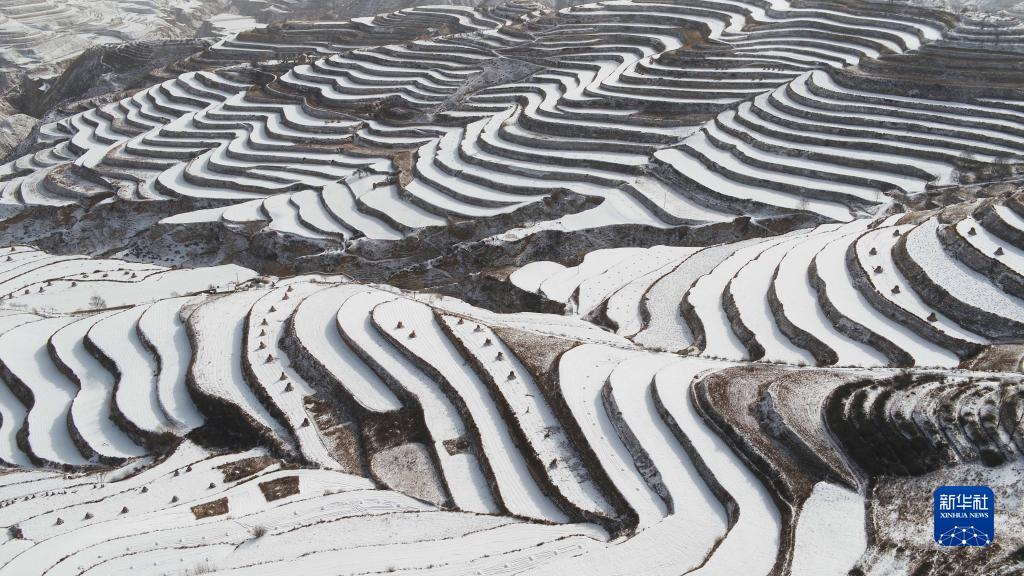 1月15日在甘肅省定西市安定區西鞏驛鎮拍攝的雪景(無(wú)人機照片)。