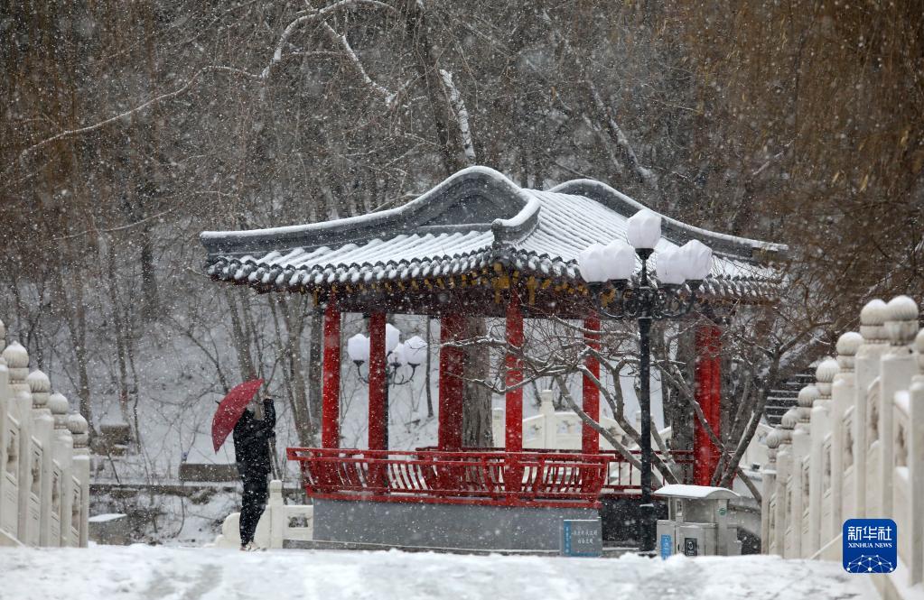1月14日,市民在河北省石家莊市長(cháng)安公園欣賞雪景。
