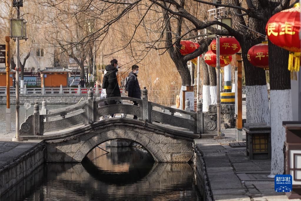 1月18日,人們在濟南百花洲歷史文化街區游覽。