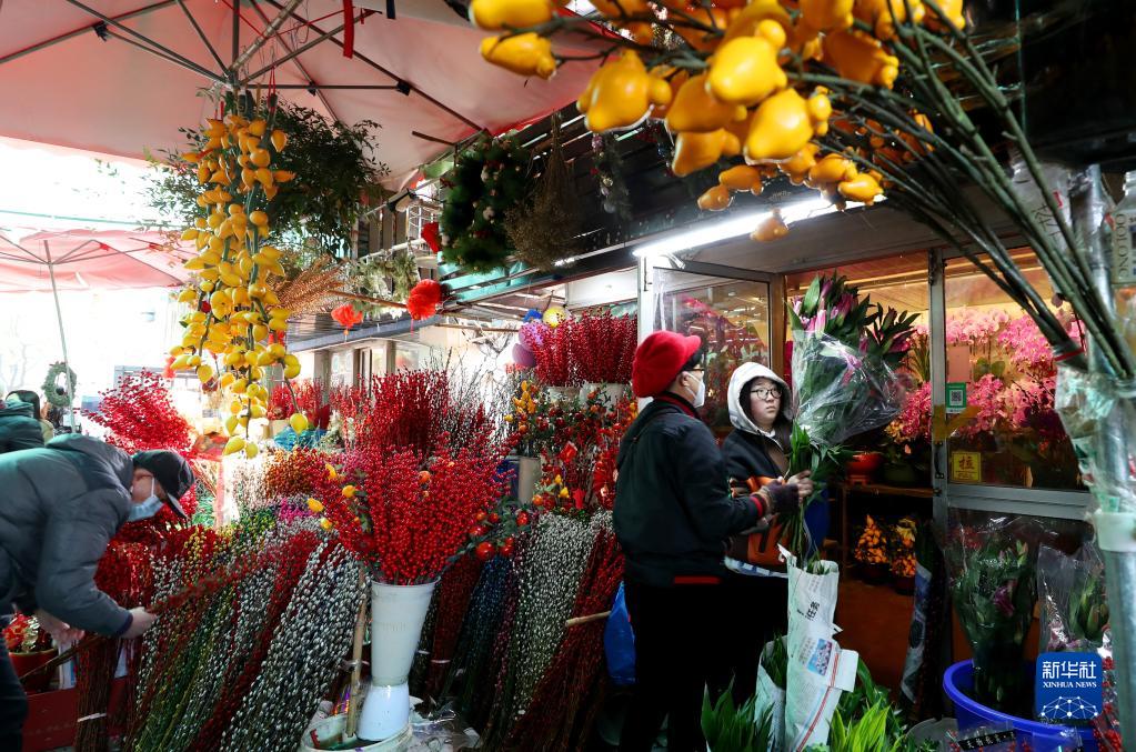 1月18日,市民在上海徐匯區的一家花卉市場(chǎng)內選購年宵花卉。