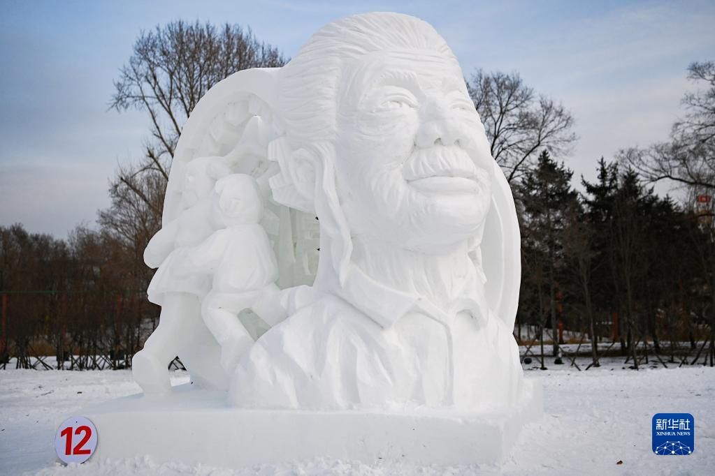 1月18日拍攝的第二十九屆全國雪雕比賽一等獎作品《期盼》。