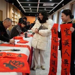 春節臨近,各地舉行寫(xiě)春聯(lián)送祝?;顒?dòng),書(shū)法志愿者為群眾書(shū)寫(xiě)并贈送新春對聯(lián)和福字,送上新春祝福。