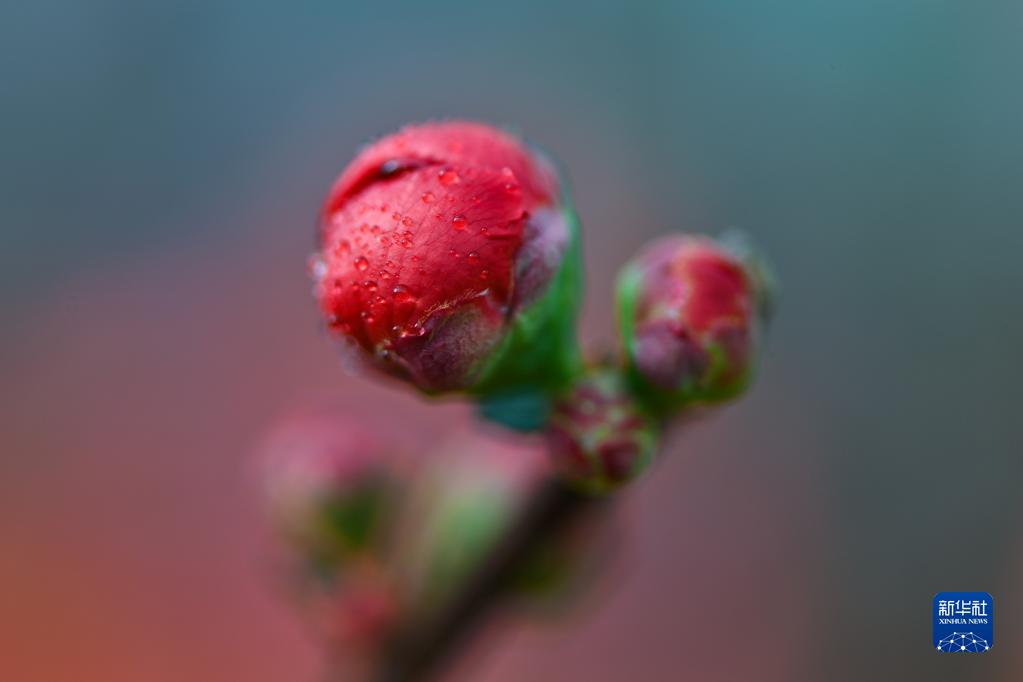 山東省青州市一處花園,海棠花含苞待放(1月15日攝)。
