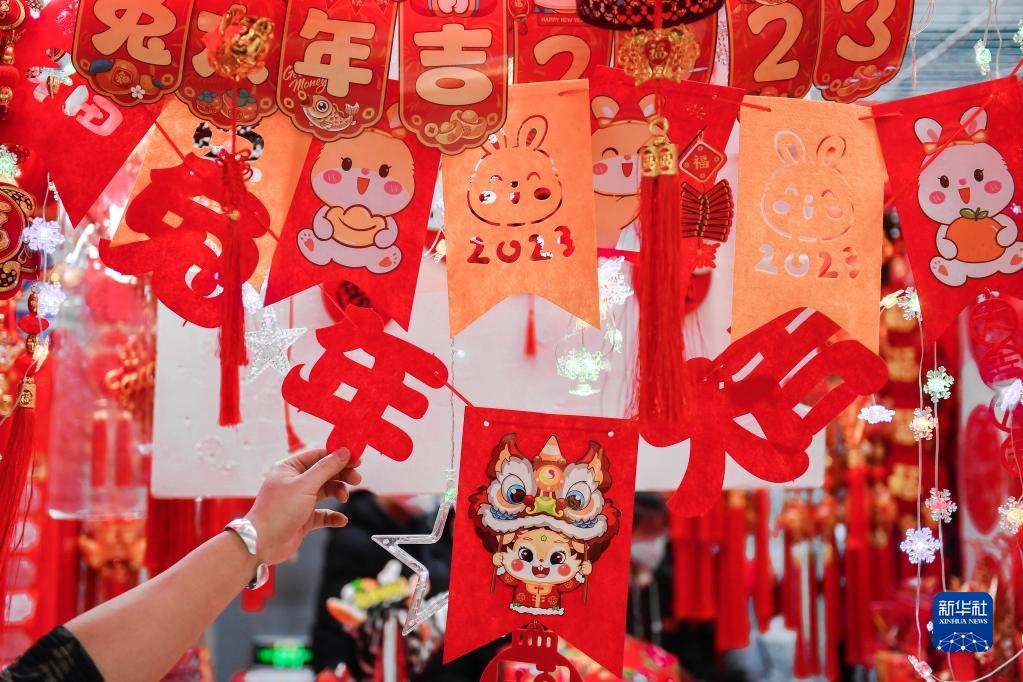 1月19日,長(cháng)春市民選購節日飾品。