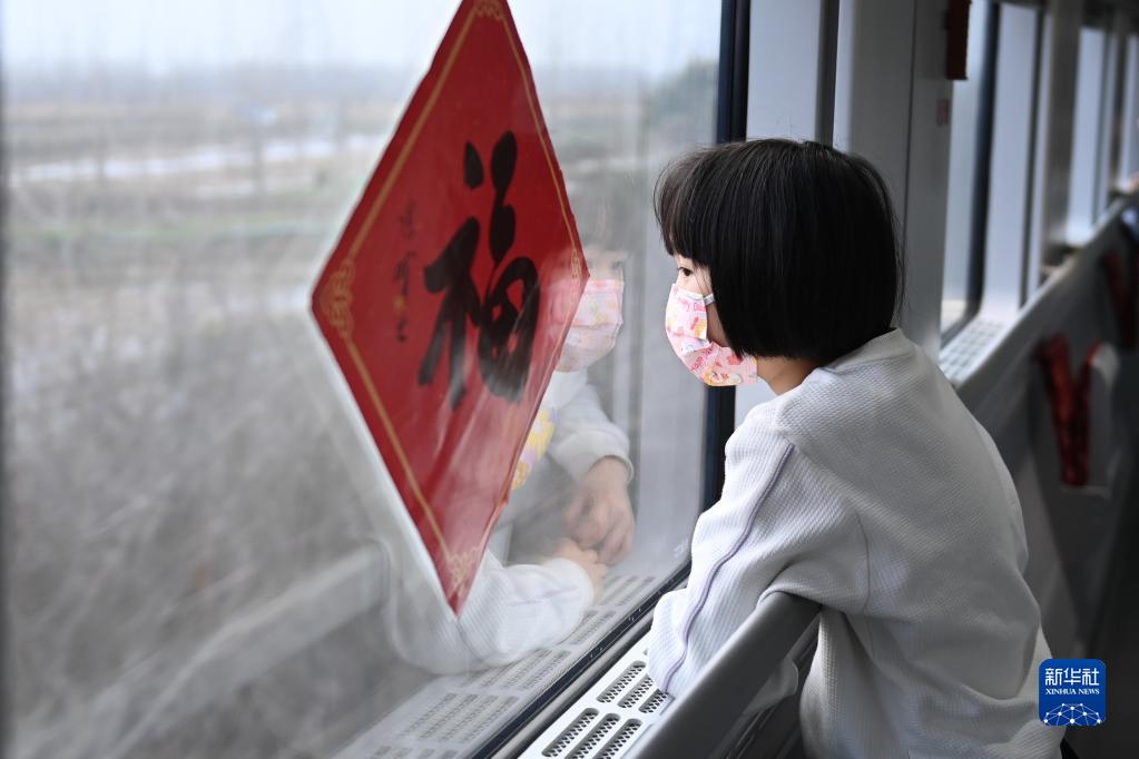 準備跟媽媽、弟弟一起回重慶外婆家過(guò)年的貝貝在車(chē)窗邊觀(guān)看沿途的風(fēng)景(1月18日攝)。貝貝目前上小學(xué)二年級,已經(jīng)3年沒(méi)有回外婆家過(guò)年了,今年爸爸要在春節期間值班,因此沒(méi)有一起登車(chē)返回。