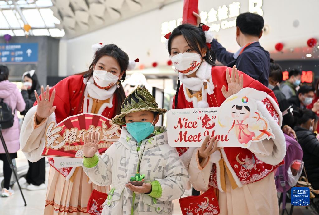 當日,在??诿捞m國際機場(chǎng)航站樓出發(fā)大廳里,剪紙、捏面人等民俗活動(dòng)吸引了不少旅客,讓他們感受到濃濃的年味。