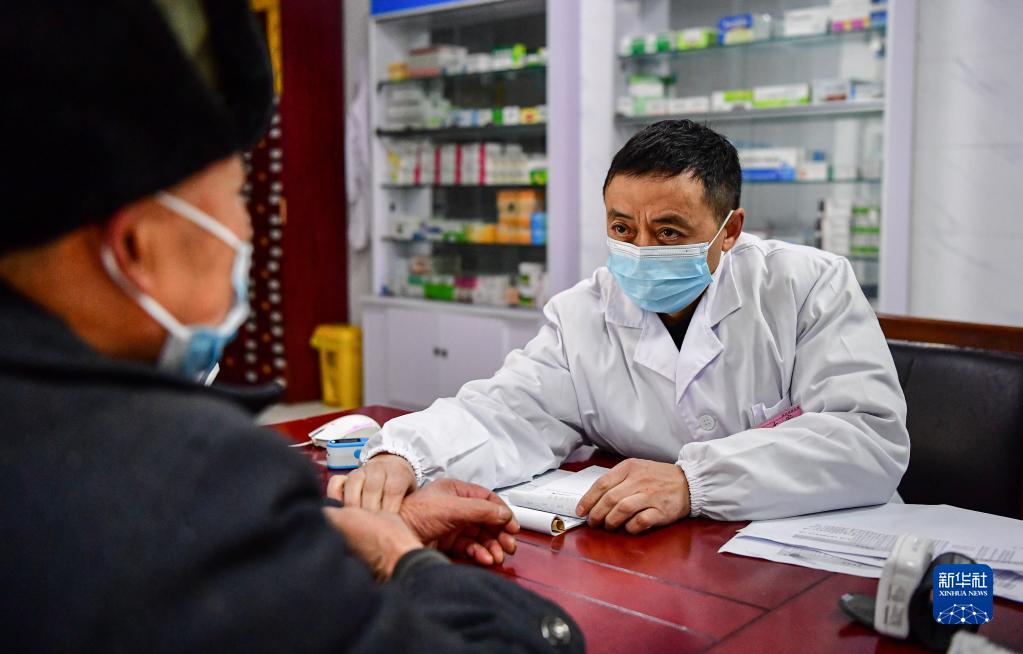 1月19日,北川縣曲山鎮任家坪村、石椅村聯(lián)合衛生室村醫趙太安在村衛生室為前來(lái)問(wèn)診的村民號脈。