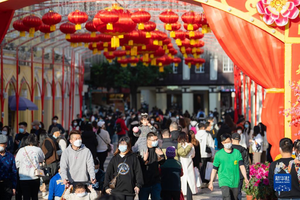 1月18日,游客在澳門(mén)市中心議事亭前地游覽。