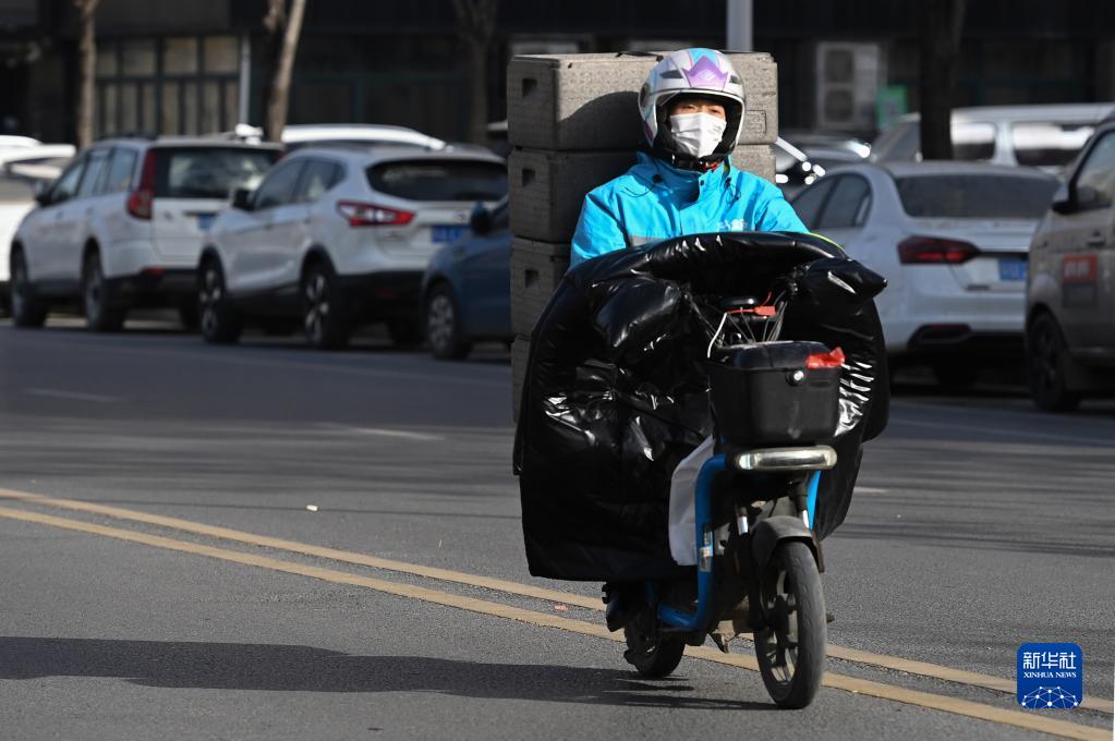 在西安市灞橋區,李文在配送的路上(1月18日攝)。