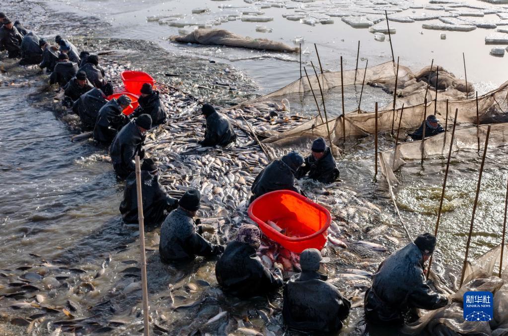 河北唐山:破冰捕魚(yú)供市場(chǎng)