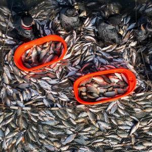 連日來(lái),河北省唐山市豐南區的水產(chǎn)養殖戶(hù)們忙著(zhù)在池塘內破冰捕魚(yú),以供應春節市場(chǎng)。