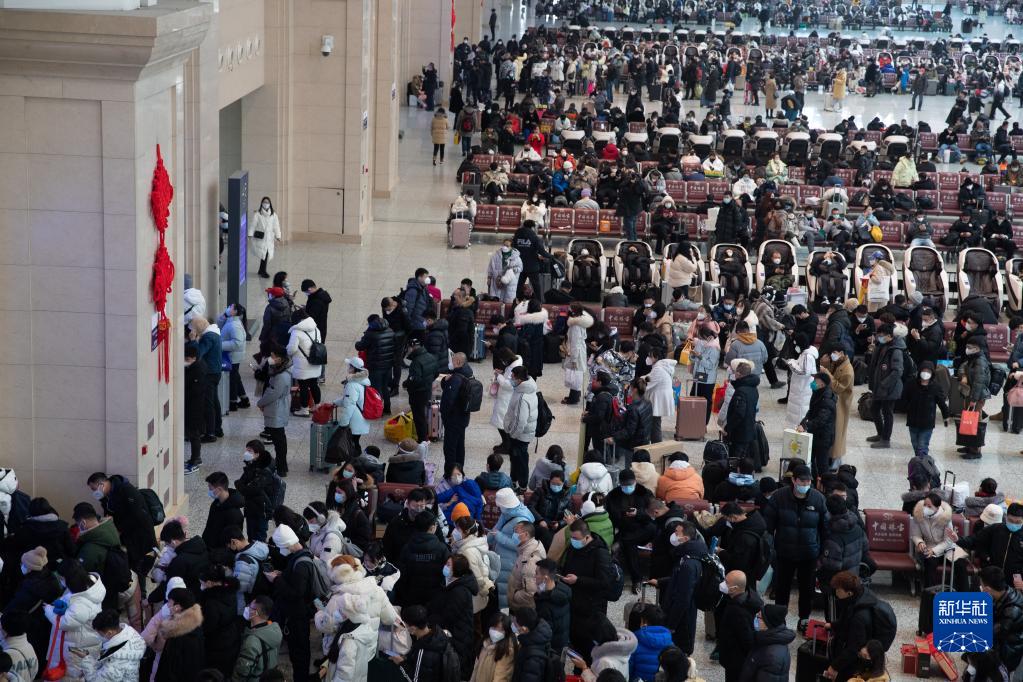 1月20日,旅客在哈爾濱火車(chē)站候車(chē)大廳內排隊檢票。