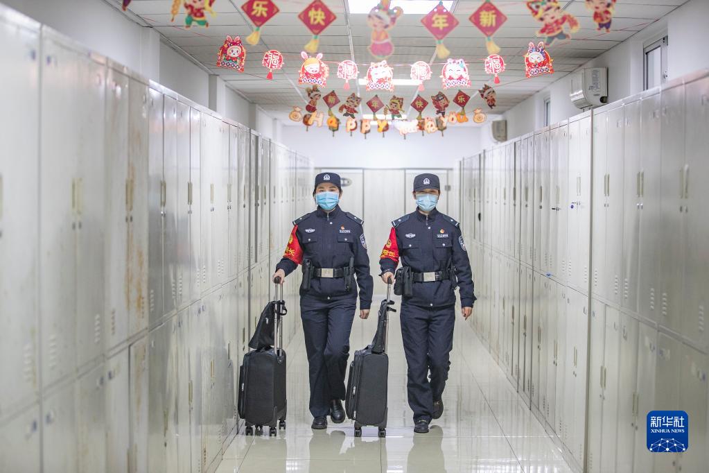 1月18日,在重慶鐵路公安處乘警支隊,“芳華”女子乘務(wù)警組的譚琳(左)、鮑婕準備值乘。