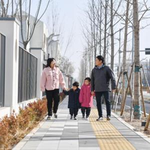 1月19日,李輝和家人在雄安新區啟動(dòng)區街道上行走。