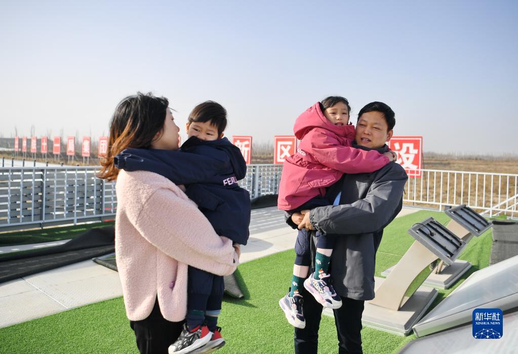 1月19日,李輝帶著(zhù)家人在項目工地參觀(guān)臺上參觀(guān)。