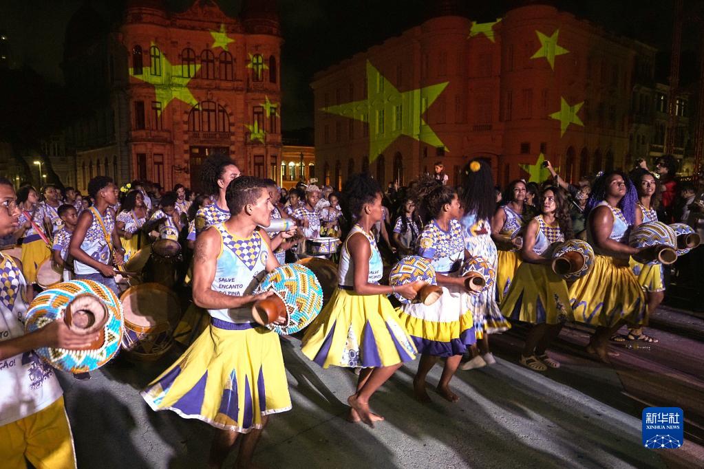 巴西東北部城市累西腓19日晚舉行中國春節慶?;顒?dòng),通過(guò)中巴歌舞、舞獅表演、燈光秀等精彩節目喜迎兔年新春。2022年,累西腓市通過(guò)法案,將中國春節設立為該市的官方節日。