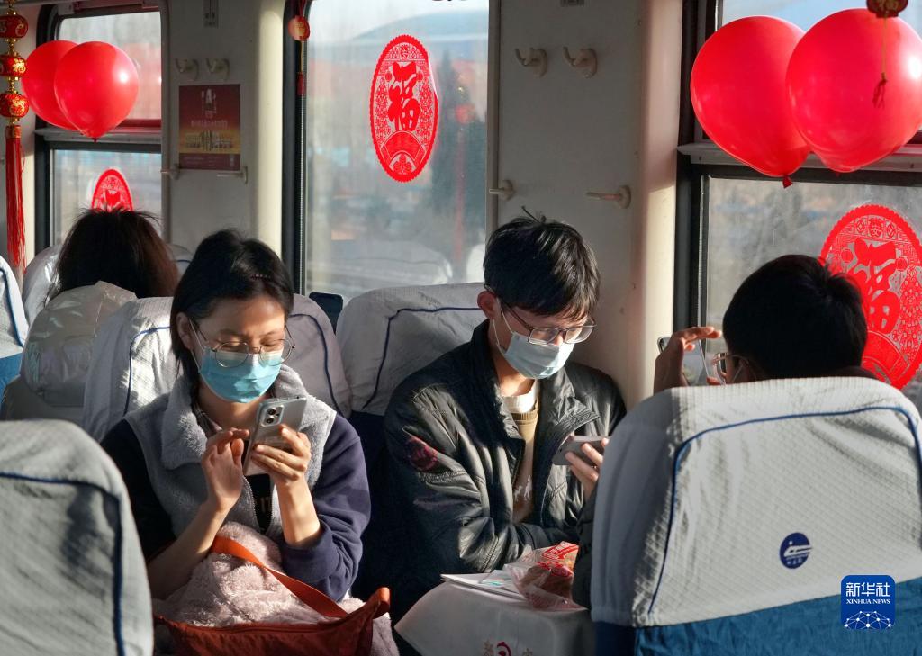 1月20日,旅客在首趟“紅旗渠”號列車(chē)上。