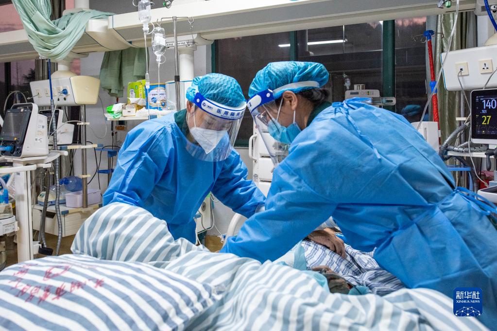 1月21日,安徽省蕪湖市繁昌區人民醫院重癥醫學(xué)科值班護士在給患者進(jìn)行護理。