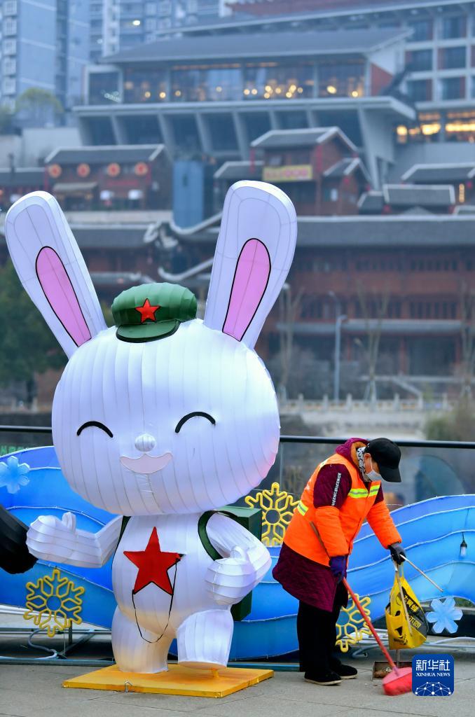1月21日,環(huán)衛工人在湖北恩施土家族苗族自治州宣恩縣城興隆老街進(jìn)行清掃保潔作業(yè)。