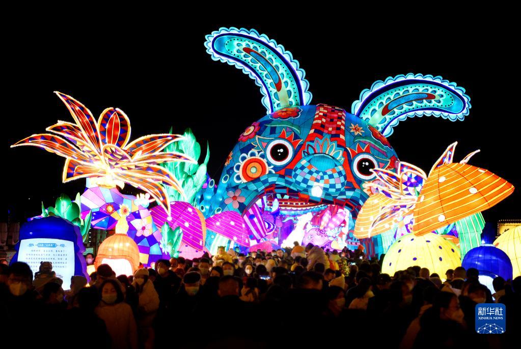 人們在西安城墻新春燈會(huì )賞燈游玩(1月20日攝)。