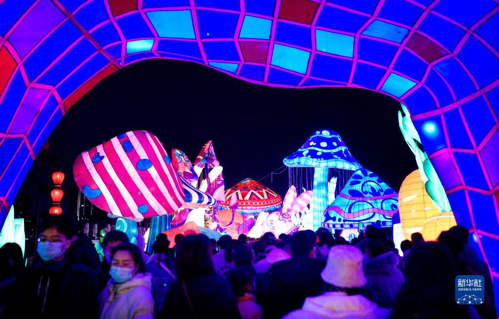 人們在西安城墻新春燈會(huì )賞燈游玩(1月20日攝)。