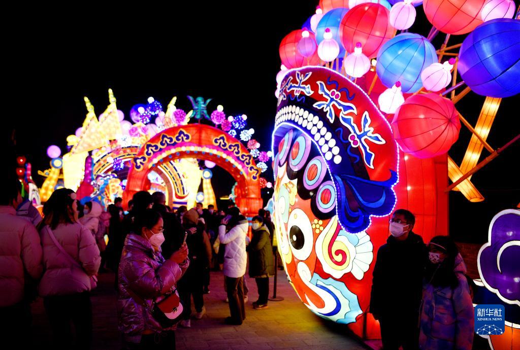人們在西安城墻新春燈會(huì )賞燈游玩(1月20日攝)。