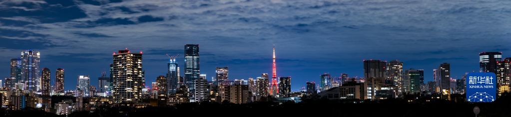 1月21日,日本東京塔亮起“中國紅”(全景照片)。